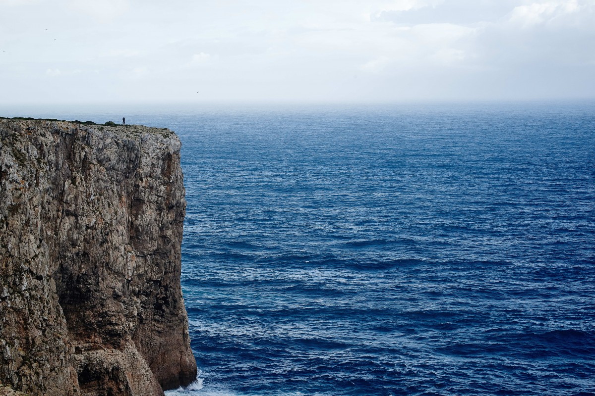 xa và rồi rơi vào đại dương xanh biếc phía sau. Ông đứng nhìn và mỉm cười